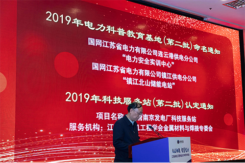 学会副秘书长严国平宣读《江苏省电机工程学会关于命名2019年电力科普教育基地(第二批)的通知》和《江苏省电机工程学会关于认定2019年科技服务站(第二批)的通知》。