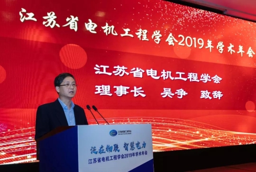 吴争在致辞中简要回顾了江苏省电机工程学会一年来的工作成果。他表示,学会各项工作的有力推进和成绩取得,离不开省科协和中国电机工程学会的关心指导,离不开学会各单位会员、各专(工)委会和广大会员的大力支持与奉献。“泛在电力物联网”已成为保障电网安全、提升服务品质、深化精益管理、实现转型升级过程中不可阻挡的潮流和趋势;希望本次年会能为电力物联网的技术进步、江苏电机工程领域的技术创新发展提供有益借鉴,通过依托科研院企的强力支撑,在广大工程技术人员的努力下,共同推进江苏能源变革和江苏能源互联网发展。