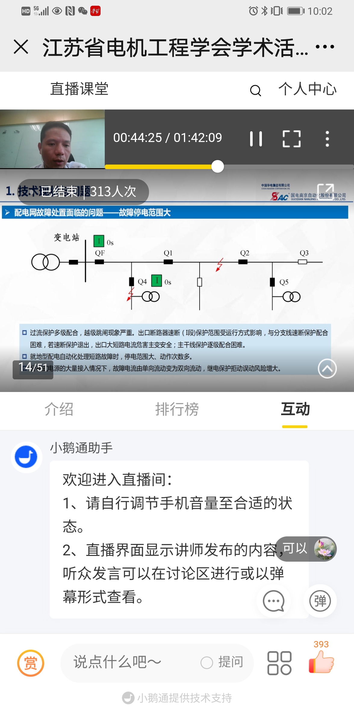 7月9日下午,江苏省电机工程学会成功举办系列线上技术讲座第十二期——《配电网故障快速处置技术及应用》。讲座采用网络直播方式进行,特邀国电南自研发中心资深设计师胡兵高工主讲。省电机工程学会各会员单位、专工委会、学生分会以及省内有关电力能源企业相关专业人员共310余人次在线观看了本次讲座。