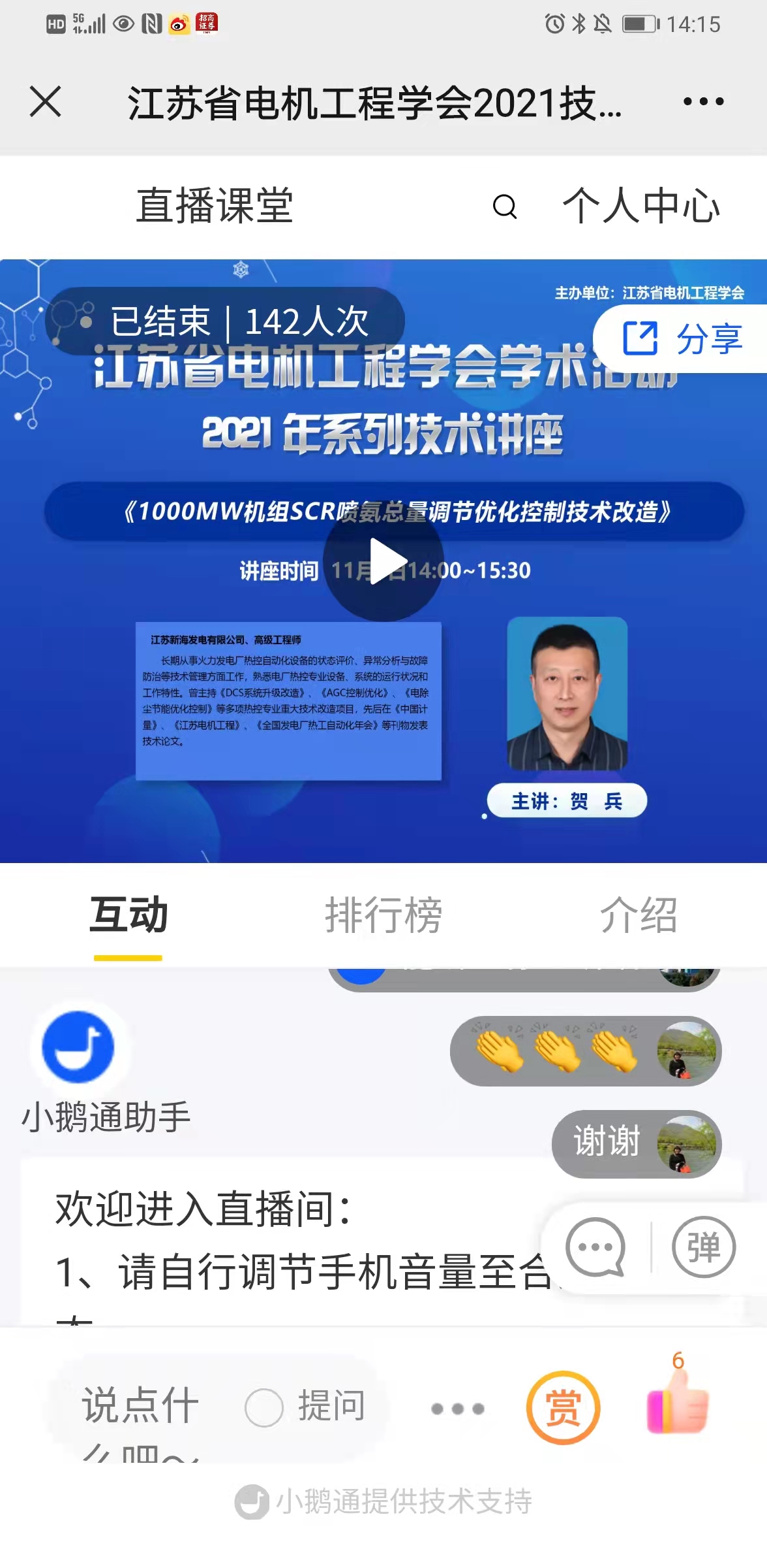 11月5日下午,江苏省电机工程学会采用网络直播方式举办2021年第二十二期线上技术讲座,邀请江苏新海发电有限公司贺兵高工主讲。省电机工程学会各会员单位、专工委会、学生分会及省内电力企业共140余人次在线观看了本次讲座。