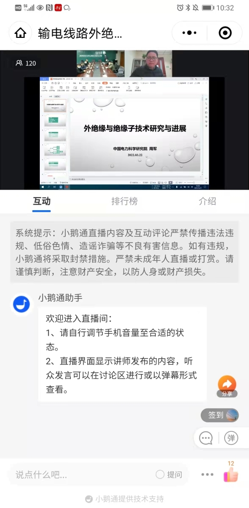 3月22日,江苏省电机工程学会高电压技术专委会联合国网江苏电科院成功举办《输电线路外绝缘方向疑难问题讲析》专题讲座,特邀中国电科院周军总工主讲。省电机工程学会各会员单位、专工委会、学生分会120余人在线观看或回看了本次讲座。
