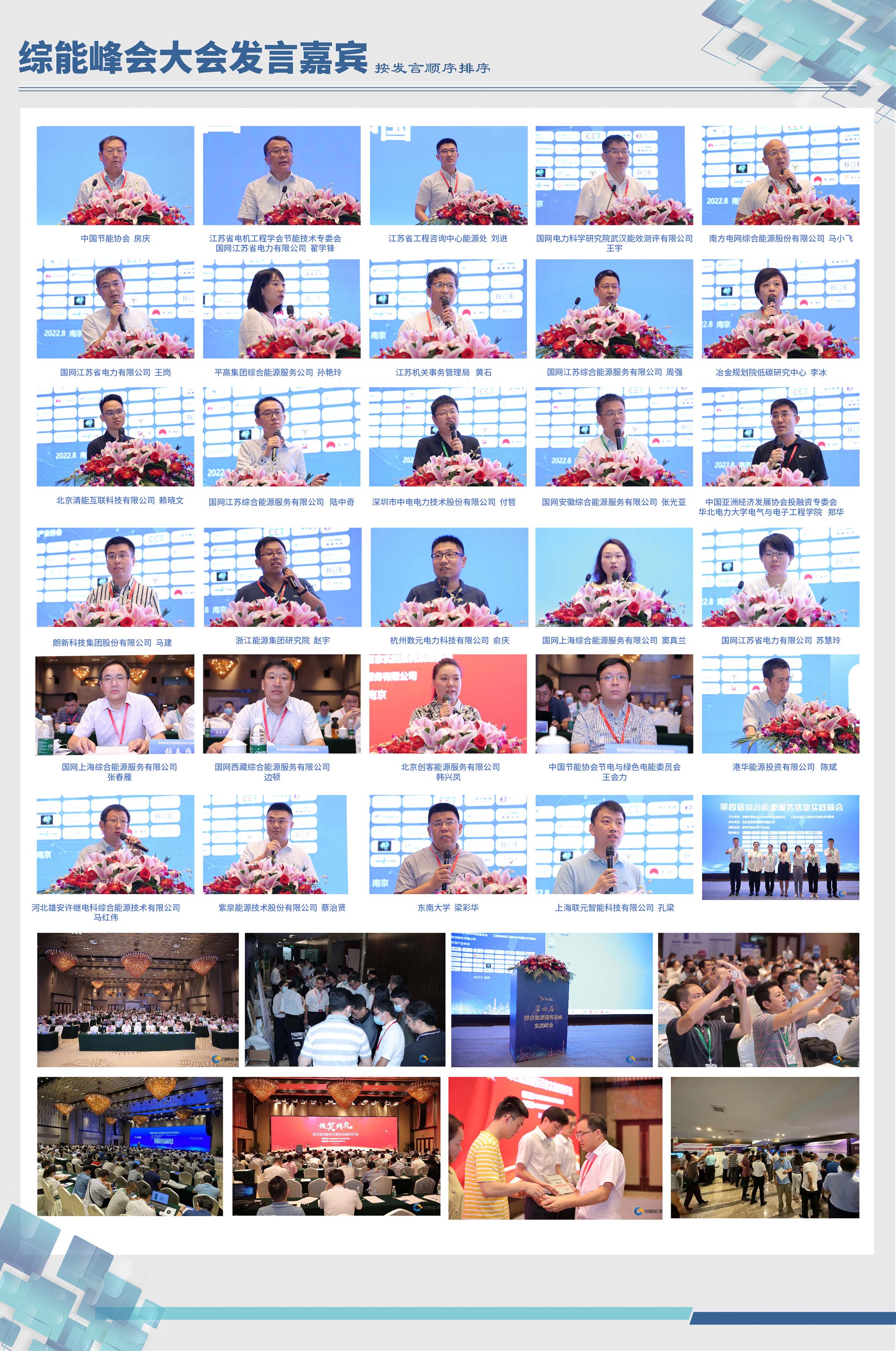 峰会还邀请了冶金规划院低碳研究中心、清能互联、国网江苏省综、CET、国网安徽省综、朗新科技、国网山东电力、浙能集团研究院、国网江苏电力、港华能源、雄安许继电科、紫泉能源、东南大学、上海联元等单位进行了不同应用场景的主题报告,为综合能源服务产业发展注入新动力。
