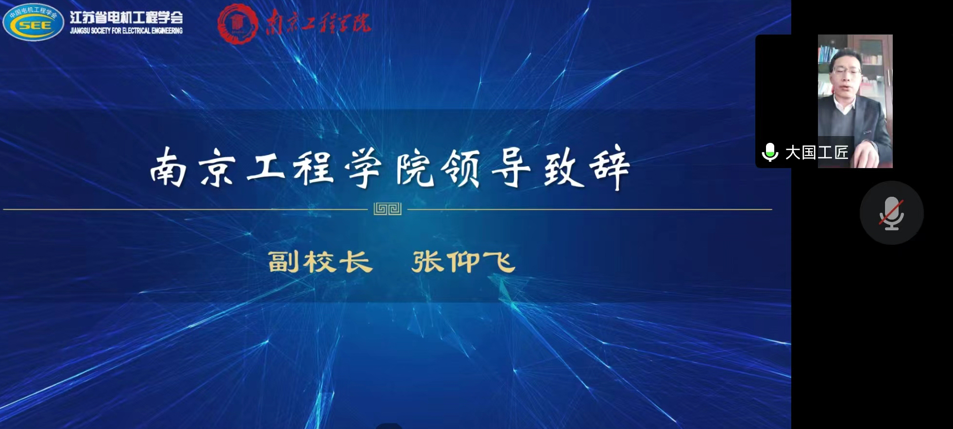 张仰飞为会议致辞,他代表南京工程学院向与会嘉宾朋友们表示热烈欢迎,也向江苏省电机工程学会长期以来的支持表示衷心感谢。南京工程学院是一所历史悠久、行业特色鲜明的省属高校,为电力行业培养了大量人才,为应对“双碳”背景下的电力转型做了周密部署。此次与江苏省电机工程学会携手构建江苏电力“碳达峰 碳中和”论坛这一技术交流平台,旨在促进电力双碳技术进步和学术交流,为促进能源电力低碳转型发展、推动江苏乃至全国双碳目标的实现做出贡献。