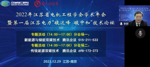 12月29日,2022年江苏省电机工程学会学术年会暨第一届江苏电力“碳达峰 碳中和”技术论坛以线上方式成功举办。中国工程院高翔院士,省电机工程学会理事长、国网江苏省电力有限公司总工程师王肃,南京工程学院副校长张仰飞,南京市科协党组成员、副主席顾元刚出席会议并致辞。省电机工程学会副理事长、河海大学原副校长鞠平主持大会开幕式。省电机工程学会常务理事兼常务副秘书长、国网江苏电科院副院长李群主持主旨报告会。