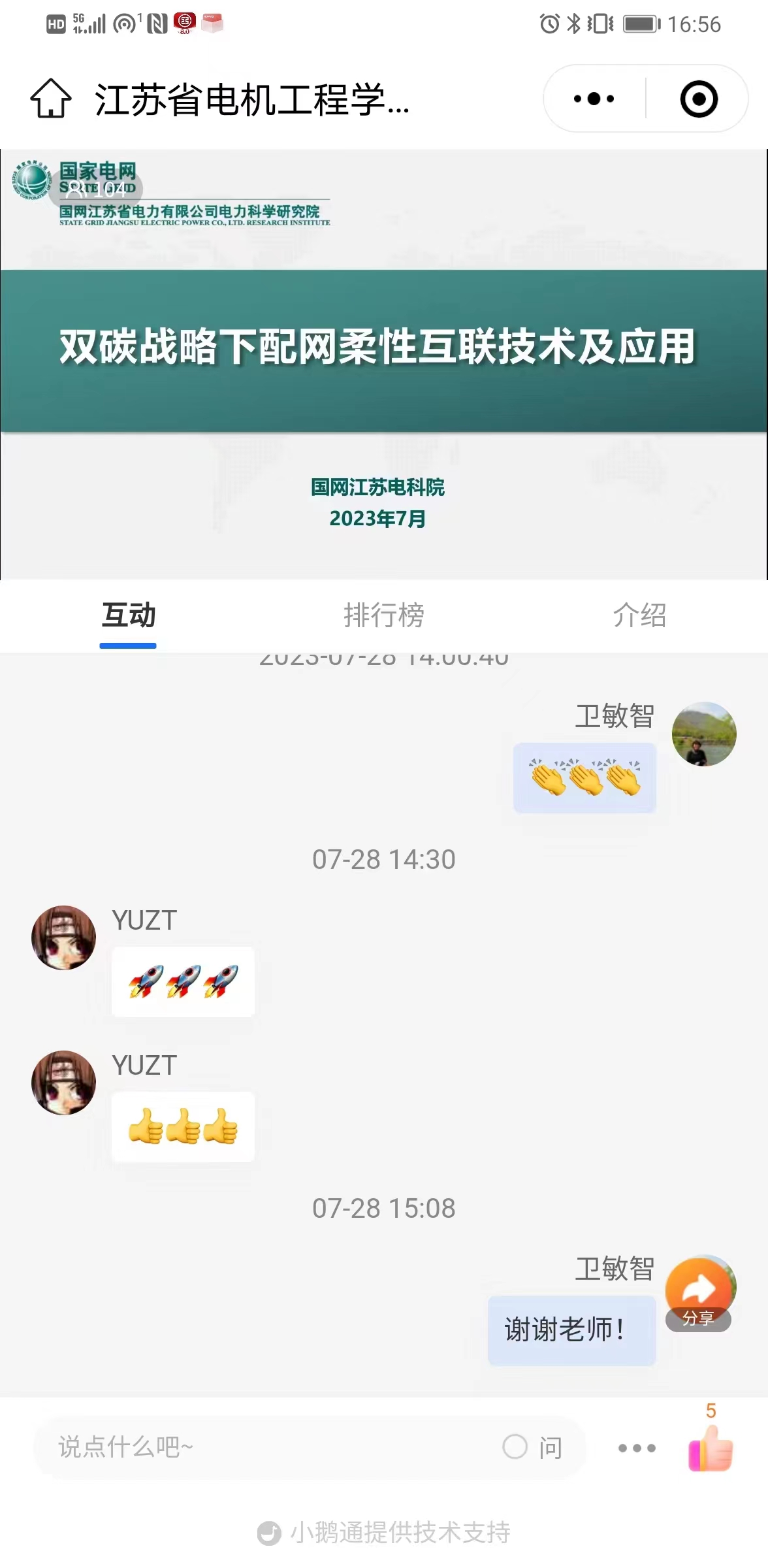 7月28日下午,江苏省电机工程学会成功举办2023年第十三期线上讲座。讲座邀请国网江苏电科院葛雪峰博士作《双碳战略下配网柔性互联技术及应用》报告。讲座采用网络直播方式进行,省电机工程学会各会员单位、专工委会、学生分会以及省内有关电力能源企业相关专业人员100余人次在线观看了本次讲座。