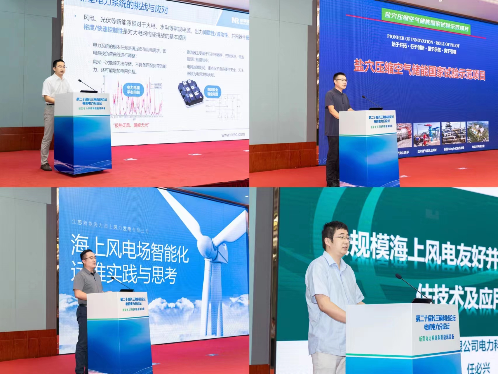 论坛特邀东南大学电气工程学院教授、博士生导师、电力系统自动化研究所所长汤奕,国网江苏电科院副院长、国网首席专家李群,南京工程学院能源与动力工程学院副教授、高级工程师宋国辉分别作《能源转型与电力系统演进》《“双高”背景下电网潮流灵活控制关键技术及工程实践》《光伏与新型储能现状与近期发展趋势》主旨报告。在专题报告环节,邀请了南京南瑞继保电气有限公司技术专家、高级工程师付俊波,中盐华能储能科技有限公司安全技术总监、华能金陵发电有限责任公司金坛储能项目部主任贾红金,江苏新能海力海上风力发电有限公司生产运营部主任陈忠良,国网江苏电科院系统高级工程师任必兴分别作《适应新型电力系统的构网储能技术》《压缩空气储能电站建设与运营》《海上风电场智能化运维实践和思考》《大规模海上风电友好并网与稳定评估技术及应用》报告。