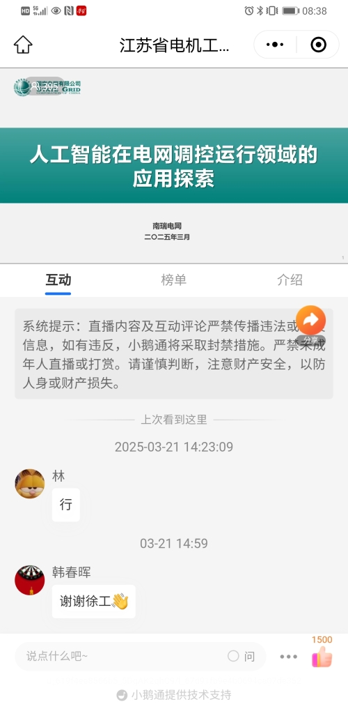3月21日下午,省电机工程学会举办2025年第二期线上讲座。讲座邀请南瑞集团电网分公司智能应用研发部经理徐希高级工程师作《人工智能在电网调控运行领域的应用探索》技术讲座。省电机工程学会各会员单位、专工委会、学生分会以及省内有关电力能源企业相关专业人员390余人次在线观看了本次讲座。