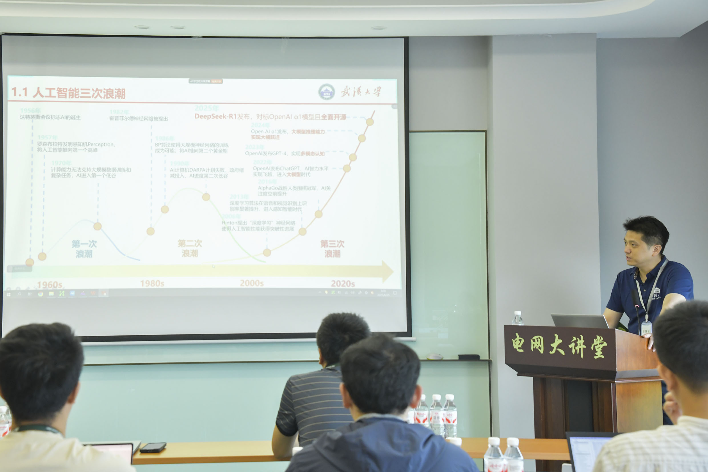 据悉,讲座聚焦调控领域人工智能研究进展技术交流探讨,特邀武汉大学电气与自动化学院教授张俊、东南大学青年首席教授叶宇剑作专题报告。张俊教授围绕“融合生成式人工智能和科学智能的电力系统数智化关键技术与应用”主题,从三个方面进行了深入阐述:一是面向新型电力系统海量多源异构多模态数据构建私域数据仓库及通用大模型操作平台;二是基于私域数据开展专用大模型训练、电力大模型适配技术及“小模型”工具融合应用,支撑垂类大模型生态开发;三是结合电力业务需求设计“目的导向”的AI智能体集群,通过多智能体协同交互赋能海量业务场景智能化升级。叶宇剑教授则以“新型电力系统态势感知与智能调控技术”为主线,从四个方面进行了深入讲解:一是如何解决各类型储能大规模部署带来的强时序耦合约束下输/配电网安全调控问题;二是基于时空特征增强感知网络和内点优化策略算法,提出的电网输电线路越限实时调控策略及其成效;三是融合状态安全与轨迹安全提升方法,并通过机会约束应对强不确定性风险以提高实时调度安全性的综合途径;四是提出的基于先验调控知识的有功功率分配机制及其通过残差网络结构集成于智能体对调控策略的优化提升。两位专家讲座内容紧扣前沿难题,提出的方法技术具有显著的理论与实践价值,对推动电力系统智能化发展具有重要指导意义。