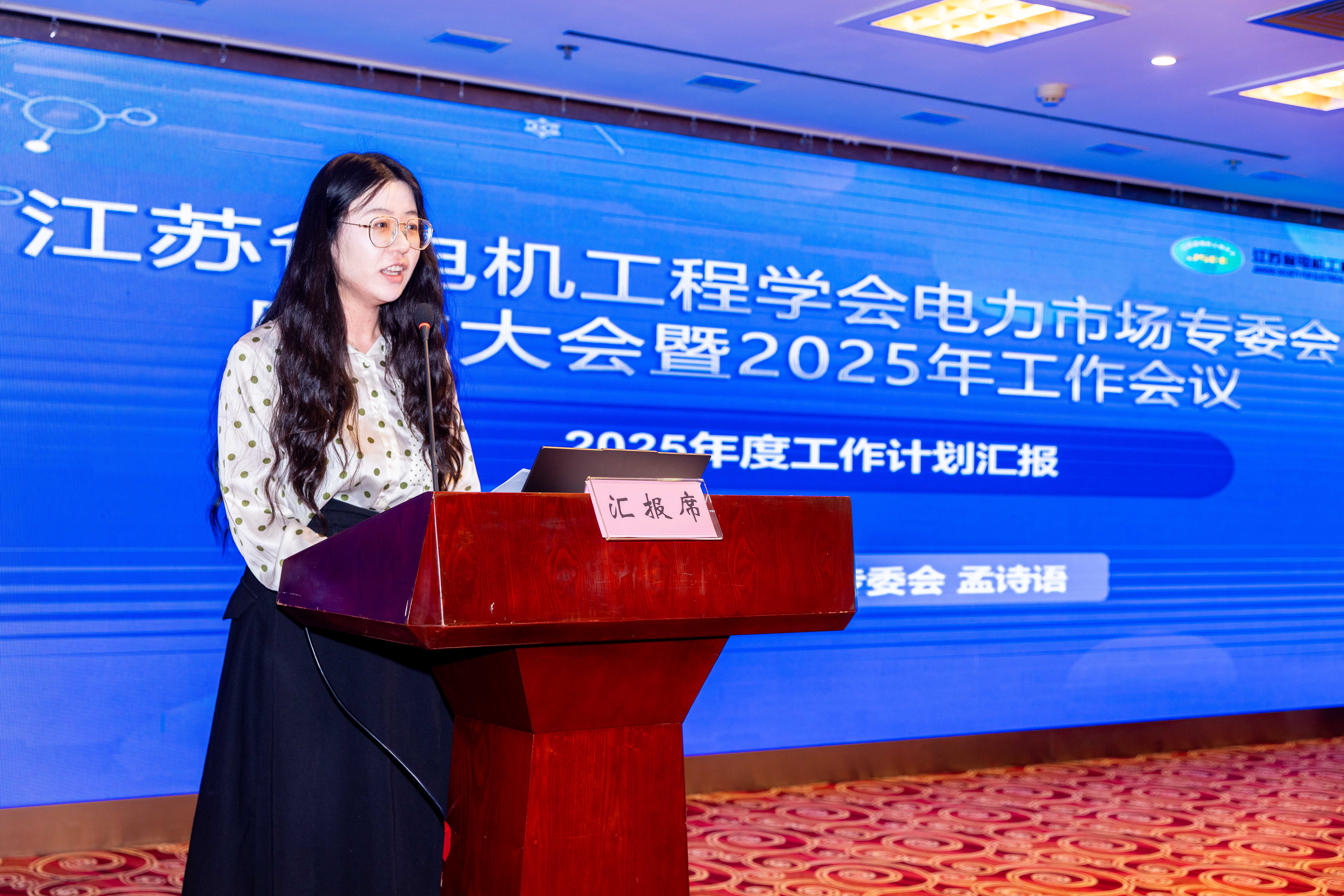 最后,专委会秘书孟诗语宣读了2025年度工作计划,提出专委会将从政策研究、市场调研、标准建设、人才培训、能力评价等方面持续发力,深化与行业管理部门和市场主体合作,推动本土化电力现货规则完善和第三方能力评价,完善用户画像体系,积极开展线上与线下沙龙、政策解读培训以及行业调研交流,为江苏电力市场健康发展和人才队伍建设打造系统服务平台。
