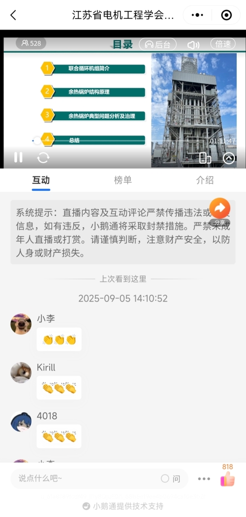 9月12日下午,省电机工程学会成功举办2025年第十八期线上讲座。讲座邀请国网江苏电科院葛雪峰博士作《工商业用户交直流微网应用探索及实践》技术报告。省电机工程学会各会员单位、专工委会、学生分会以及省内有关电力能源企业相关专业人员500余人次在线观看了本次讲座。