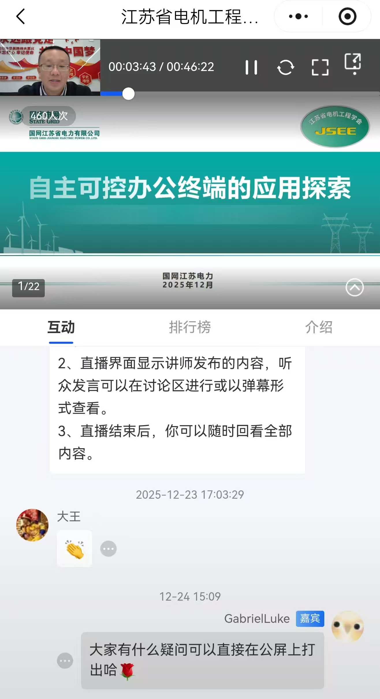 12月24日,省电机工程学会电力信息专委会举办《自主可控办公终端的应用探索》线上专题培训。学会各会员单位及行业相关人员460余人在线收看了本次培训。