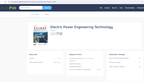 近日,《电力工程技术》期刊先后被欧洲学术出版中心数据库(EuroPub)、哥白尼索引精选数据库(ICI Journals Master List)收录,意味着期刊受到更多国际数据库认可,对其扩大传播范围、增加显示度、提升国际影响力有积极意义。