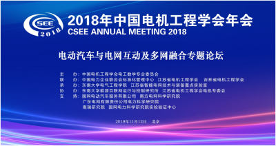 11月12日,2018年电动汽车与电网互动及多网融合专题论坛在北京成功举办。本次会议由中国电机工程学会电工数学专委会主办,江苏省电机工程学会电机专委会、东南大学能源互联网运行与控制研究所协办,中国电力企业联合会标准化管理中心、江苏省电机工程学会、吉林省电机工程学会联办,东南大学电气工程学院、江苏省智能电网技术与装备重点实验室承办。