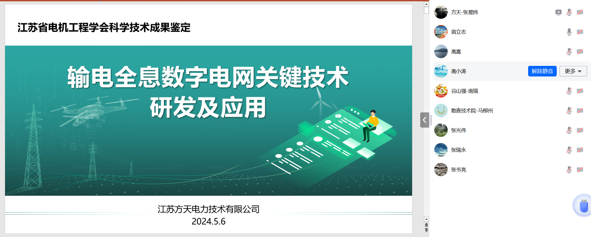5月7日,江苏省电机工程学会受江苏方天电力技术有限公司委托,以视频会议方式主持召开“输电全息数字电网关键技术研发及应用”项目科技成果鉴定会。本次鉴定委员会由来自国网电力科学研究院武汉南瑞有限责任公司、南京师范大学、国网江苏省电力有限公司电力科学研究院、中国能源建设集团江苏省电力设计院有限公司、江苏省测绘工程院、江苏省地质勘查技术院和南京邮电大学等单位专家组成。
