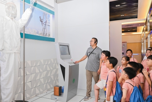 讲解员带领小朋友们通过寓教于乐的互动,提高职工子女安全意识,增进对电力知识和国家电网公司的了解。活动安排了安全科普小课堂、实操安全帽的佩戴、电力知识讲解和体验等,还在专业人员的指导下还亲身体验了跨步电压、触电、高空作业等安全模拟场景,探索电的奥秘。每一个环节都充满了惊喜与收获,为孩子们在学习电力知识的过程中搭建起了“家”与“业”的桥梁。