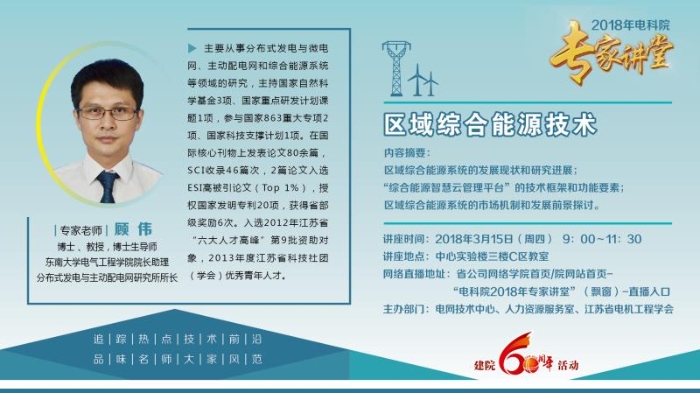 3月15日上午,江苏省电机工程学会联合国网江苏电科院举办“专家讲堂”授课活动,特邀东南大学博士生导师、分布式发电与主动配电网研究所所长顾伟教授作“区域综合能源技术”专题讲座。