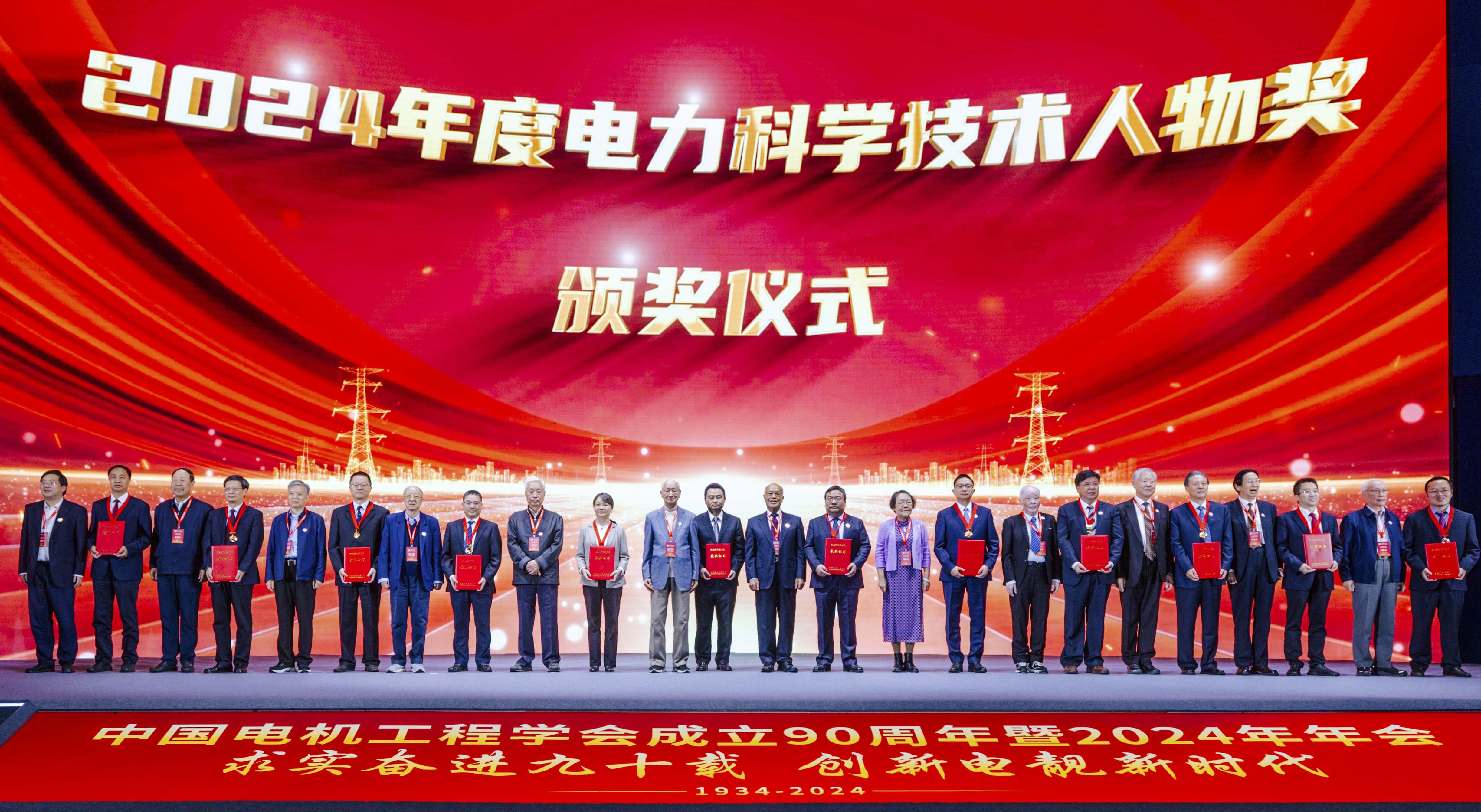 会上举行了2024年度中国电力科学技术奖和人物奖颁奖典礼。江苏省电机工程行业领域共有33个单位、51个项目获科技奖,7名个人获人物奖。其中,由江苏省电机工程学会理事长单位国网江苏省电力有限公司、副理事长单位南瑞集团有限公司、常务理事单位中国电力科学研究院有限公司南京分院、国电南京自动化股份有限公司等单位分别牵头完成的项目获电力科学技术进步一等奖5项、二等奖5项、三等奖5项;江苏省电机工程学会常务理事兼常务副秘书长李群荣获电力科学技术杰出贡献奖并上台领奖,中低压直流专委会主任委员袁宇波等3人获电力优秀科技工作者奖、3人获电力优秀青年科技人才奖。
