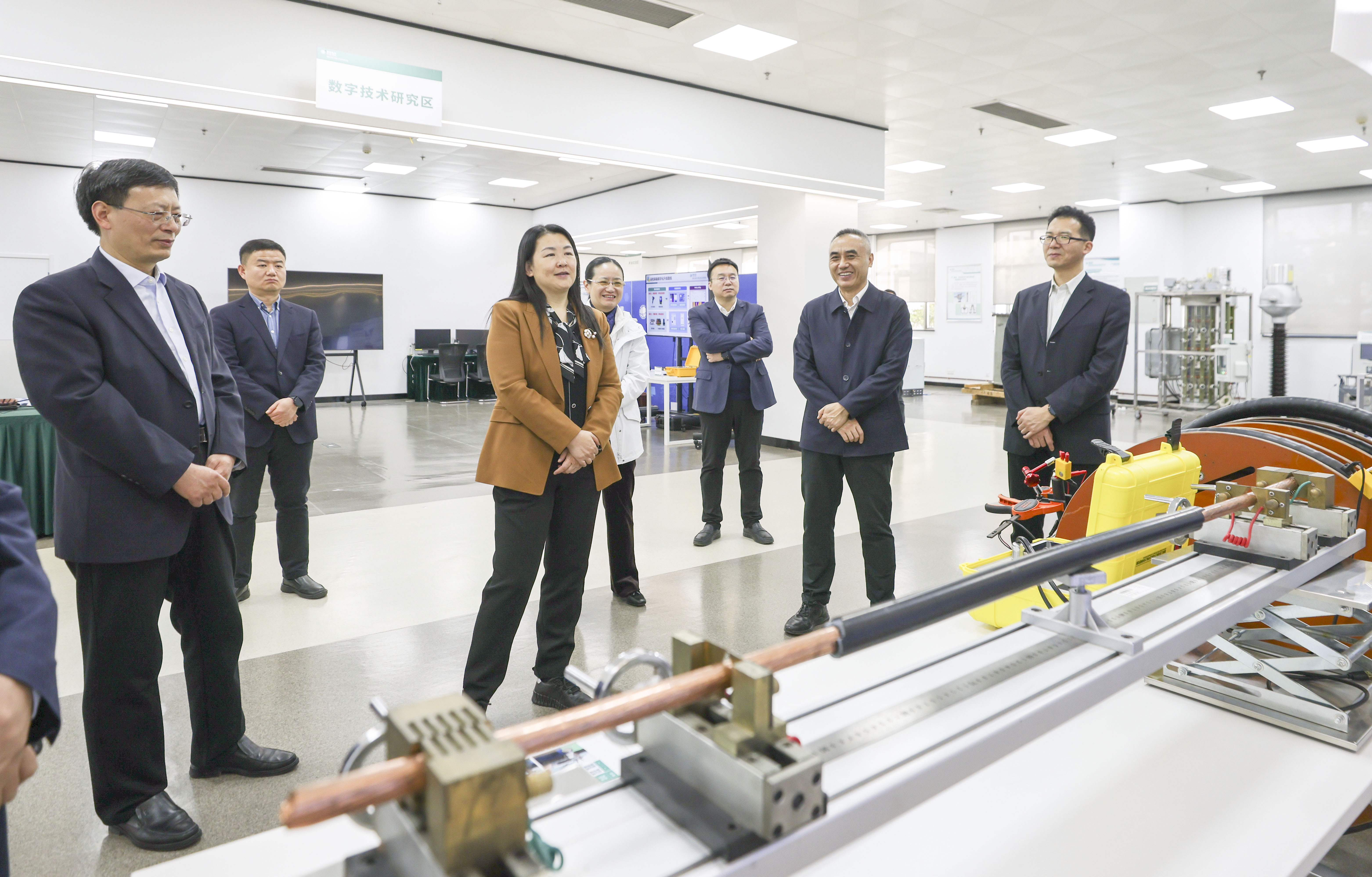 陈梅一行先后参观了电网设备智能运检技术实验室、先进配电组网技术实验室、海上风电实验室,听取了相关技术支撑与科技创新的介绍,与研究人员展开深入交流。