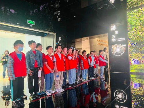 在“源生万物”展厅,能源革命的历史长卷徐徐展开。小记者们认真聆听能源三次变革的讲解,从中国电力发展脉络中解开上海“不夜城”的神秘密码,还仔细记录下1882年上海外滩点亮中国首盏电灯这一标志性事件,触摸到电力事业发展的源头。
