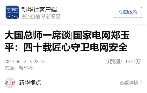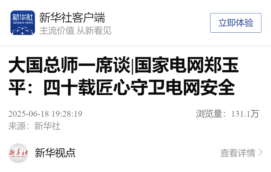 6月18日,新华社发表题为《国家电网郑玉平:四十载匠心守卫电网安全》的文章,专题报道江苏省电机工程学会副理事长、电网运行风险防御技术与装备全国重点实验室主任、国家电网有限公司首席科学家郑玉平。