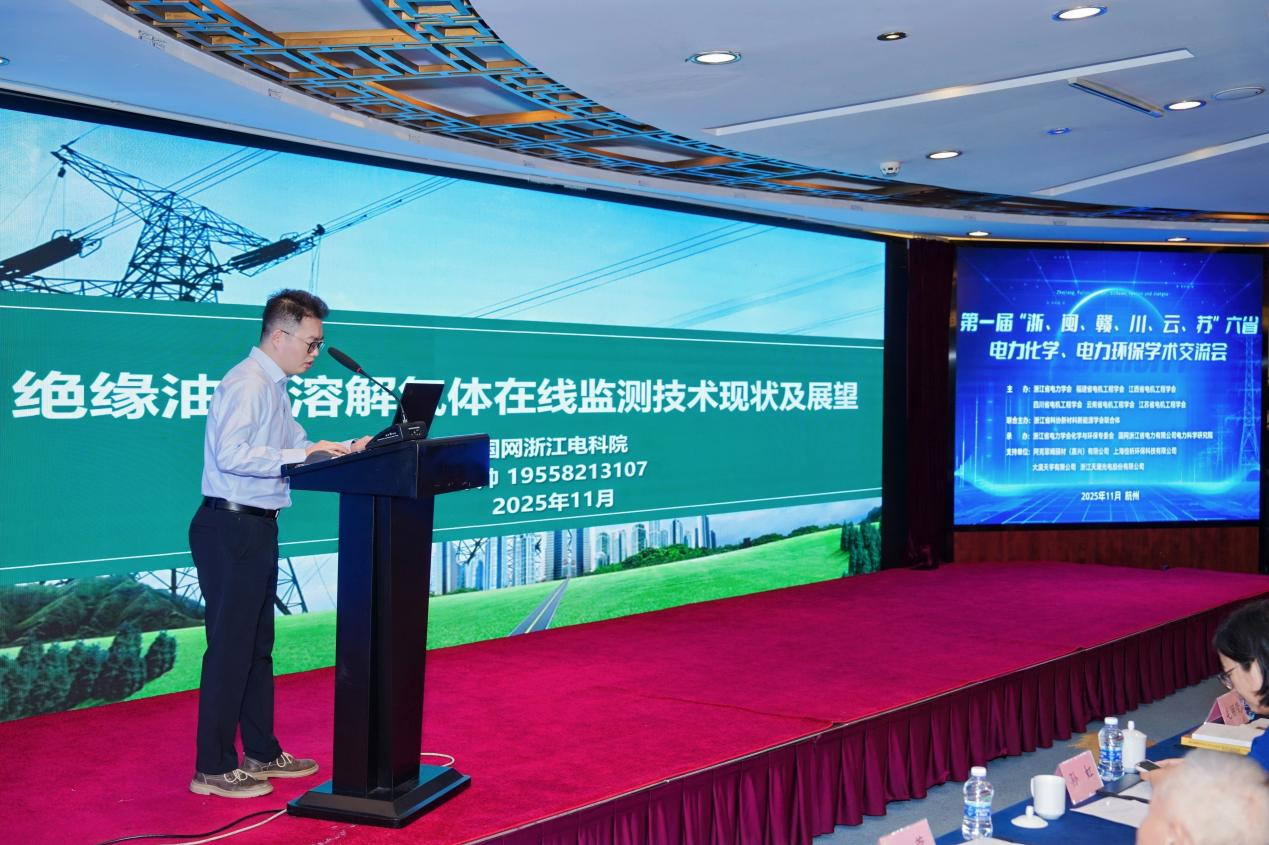 会议邀请4位业内知名专家学者做主旨报告。浙江大学能源工程学院郑成航教授、浙江省生态环境低碳发展中心专家倪吴忠、华能集团首席专家庞胜林、国网浙江电科院电网郭帅分别作《数智化驱动能源绿色低碳转型》《浙江省燃煤电厂绩效分级技术指南(试行)解读》《绿氢:制取、储运及应用》《绝缘油中溶解气体在线监测技术现状及展望》报告。
