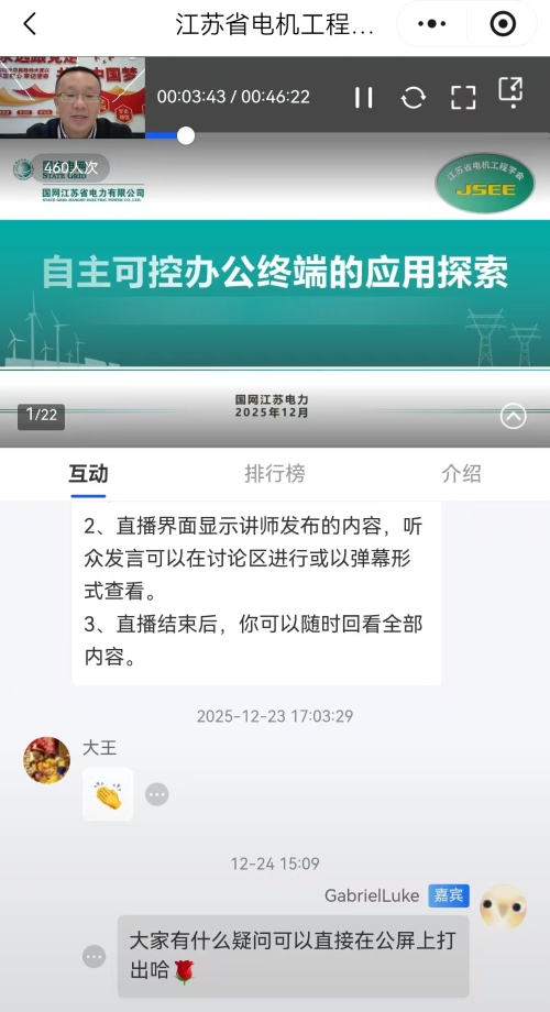 12月24日,省电机工程学会电力信息专委会举办《自主可控办公终端的应用探索》线上专题培训。学会各会员单位及行业相关人员460余人在线收看了本次培训。
