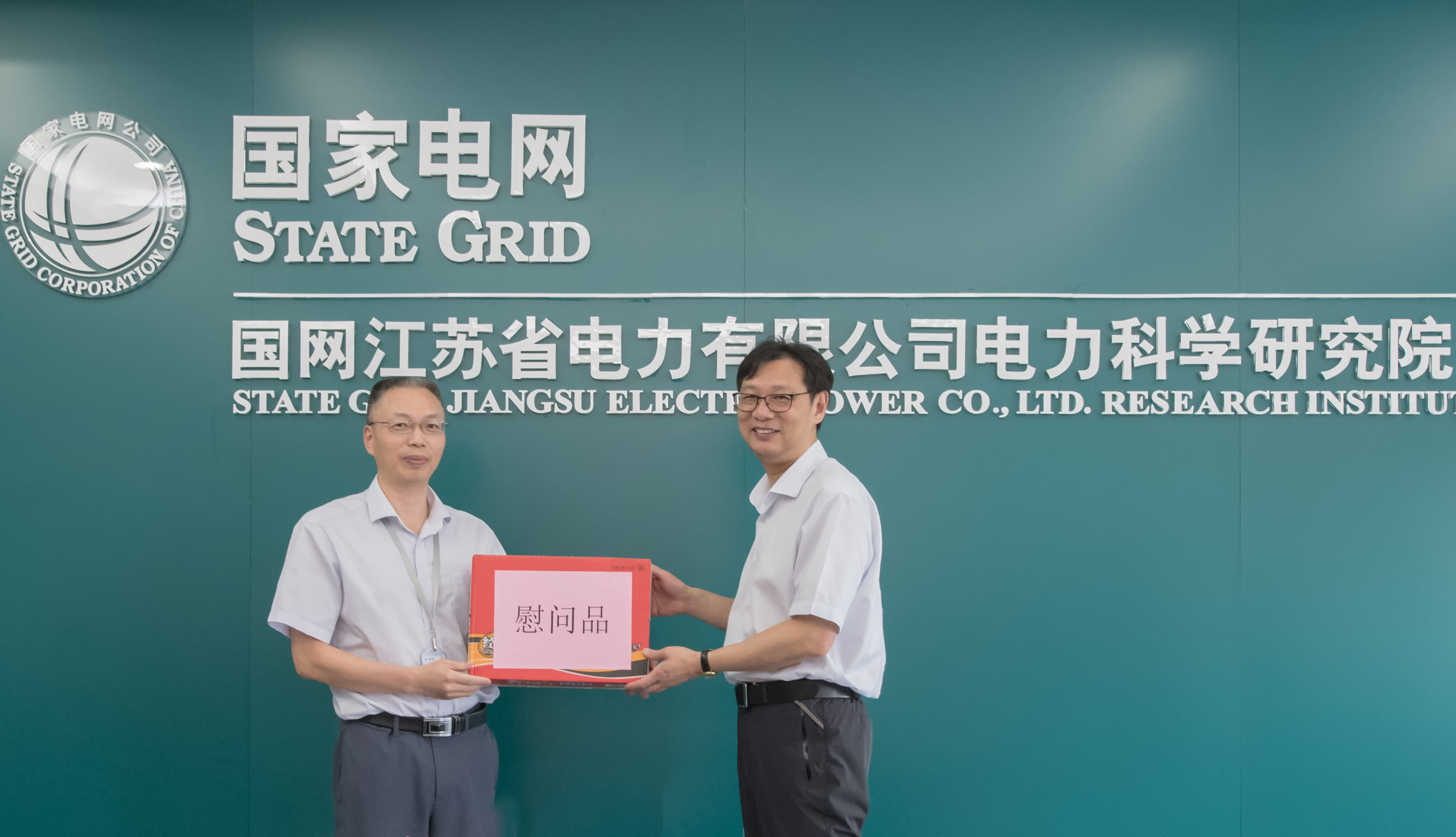 8月24日,国网江苏省电力有限公司企业文化总顾问方中宝一行来到国网江苏电科院、江苏省电机工程学会开展高温慰问活动,代表国网江苏公司亲切慰问高温下坚守岗位的省电机工程学会秘书处全体工作人员,并送来慰问信和慰问品。