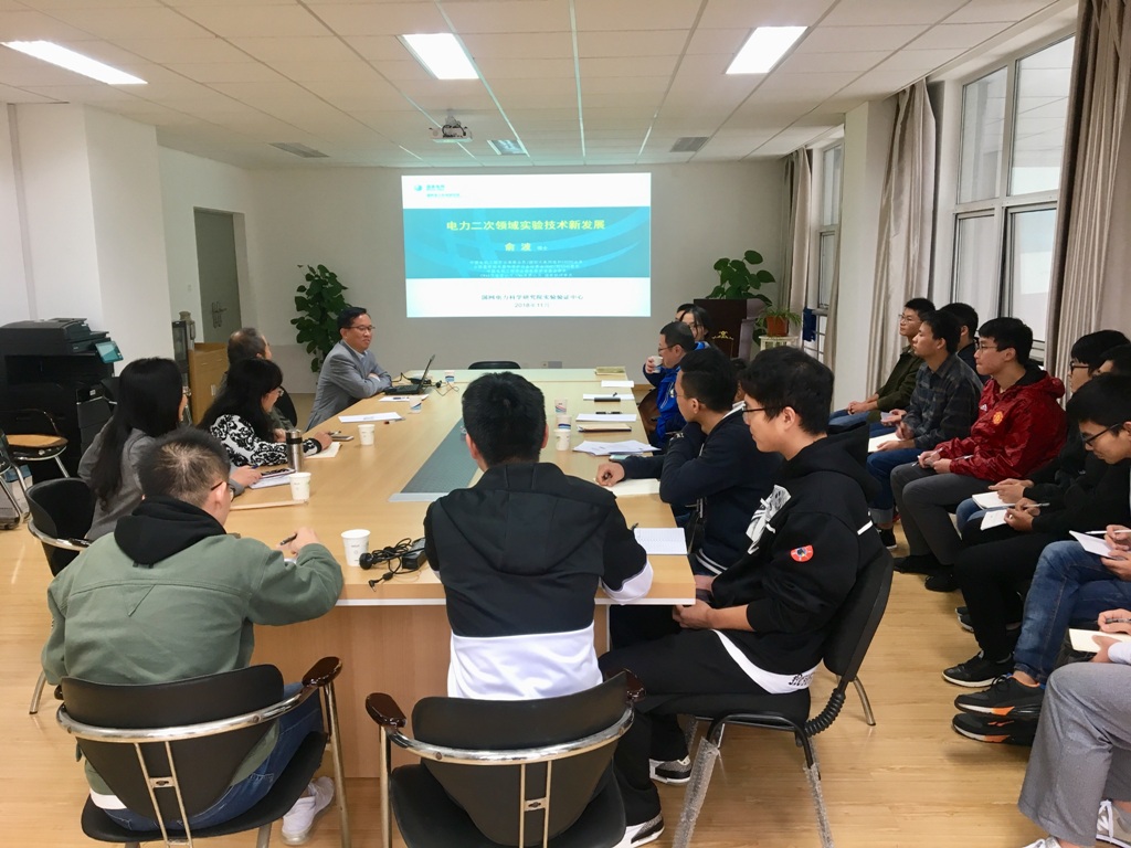 11月8日,由江苏省电机工程学会电磁兼容专委会、南京师范大学电气与自动化工程学院学生分会联合主办的新观点新学说学术沙龙在南京师范大学新北校区理工实验楼举行。活动邀请了国网电力科学研究院有限公司验证中心党总支书记、副主任俞波博士,作“电力二次领域实验技术新发展”的主题报告。南京师范大学电气与自动化工程学院的部分教师和研究生约20余人参加了活动。