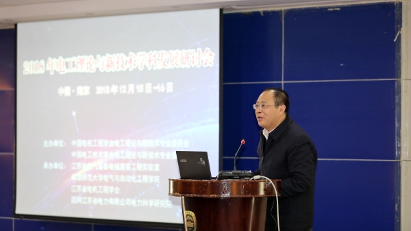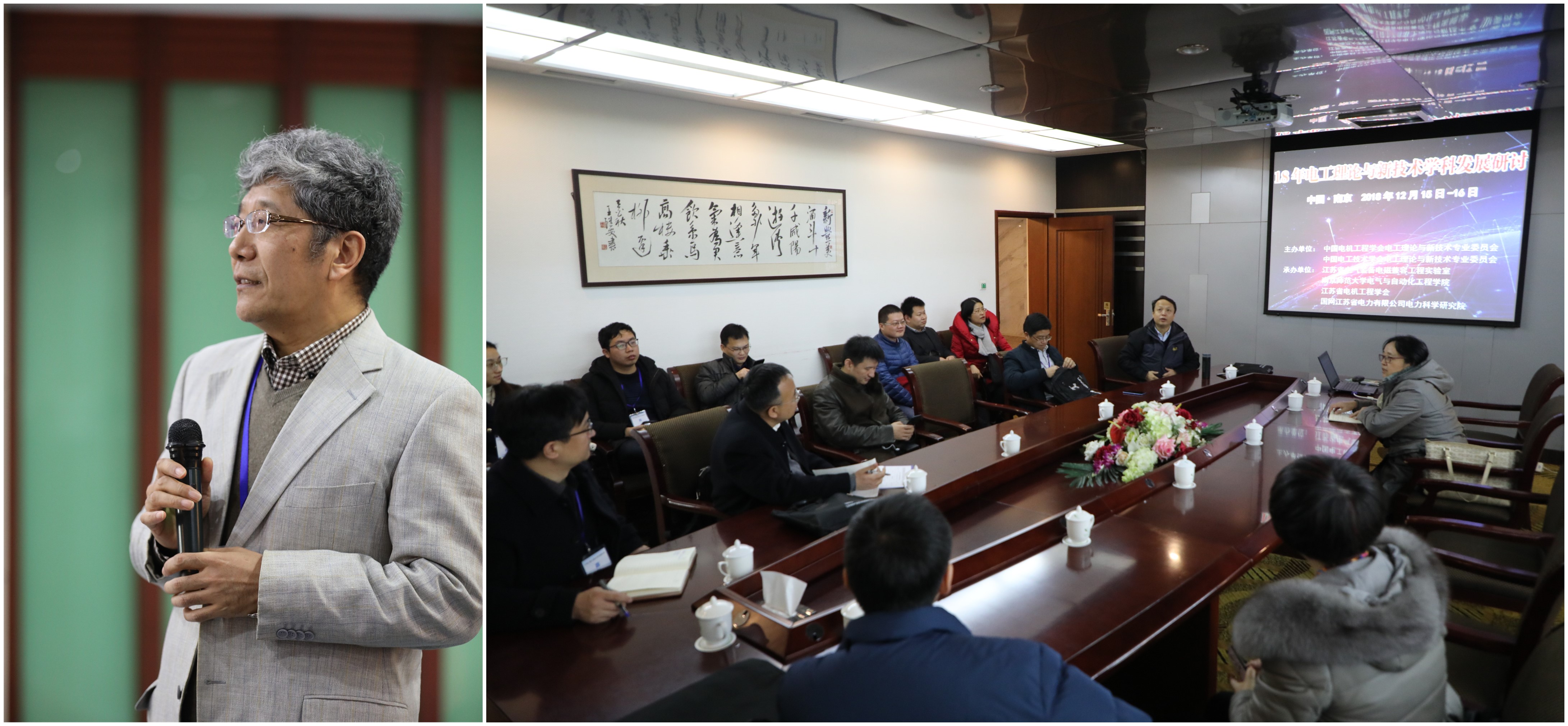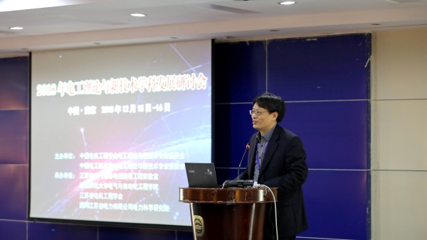 12月16日,以“电工理论与新技术学科发展路线图”为主题的2018年电工理论与新技术学科发展研讨会在南京召开。本次会议由中国电机工程学会电工理论与新技术专业委员会、中国电工技术学会电工理论与新技术专业委员会、江苏省电气装备电磁兼容工程实验室主办,由南京师范大学电气与自动化工程学院、江苏省电机工程学会、国网江苏省电力有限公司电力科学研究院承办。江苏省电气装备电磁兼容工程实验室主任赵阳主持报告交流会,中国电机工程学会理论电工专委会主任委员、中国电工技术学会常务理事、华北电力大学崔翔教授主持大会讨论。南京师范大学党委书记、省电机工程学会副理事长胡敏强,省电机工程学会常务理事兼副秘书长、国网江苏电科院副院长李群出席会议并致辞。会议邀请了国家自然科学基金委电气科学与工程处关永刚主任作主旨报告、武汉大学电气与自动化学院副院长何怡刚教授等13位专家学者作会议报告,组织了3个主题分组讨论,来自各高校、研究机构的代表、学会会员等80余人参加会议。