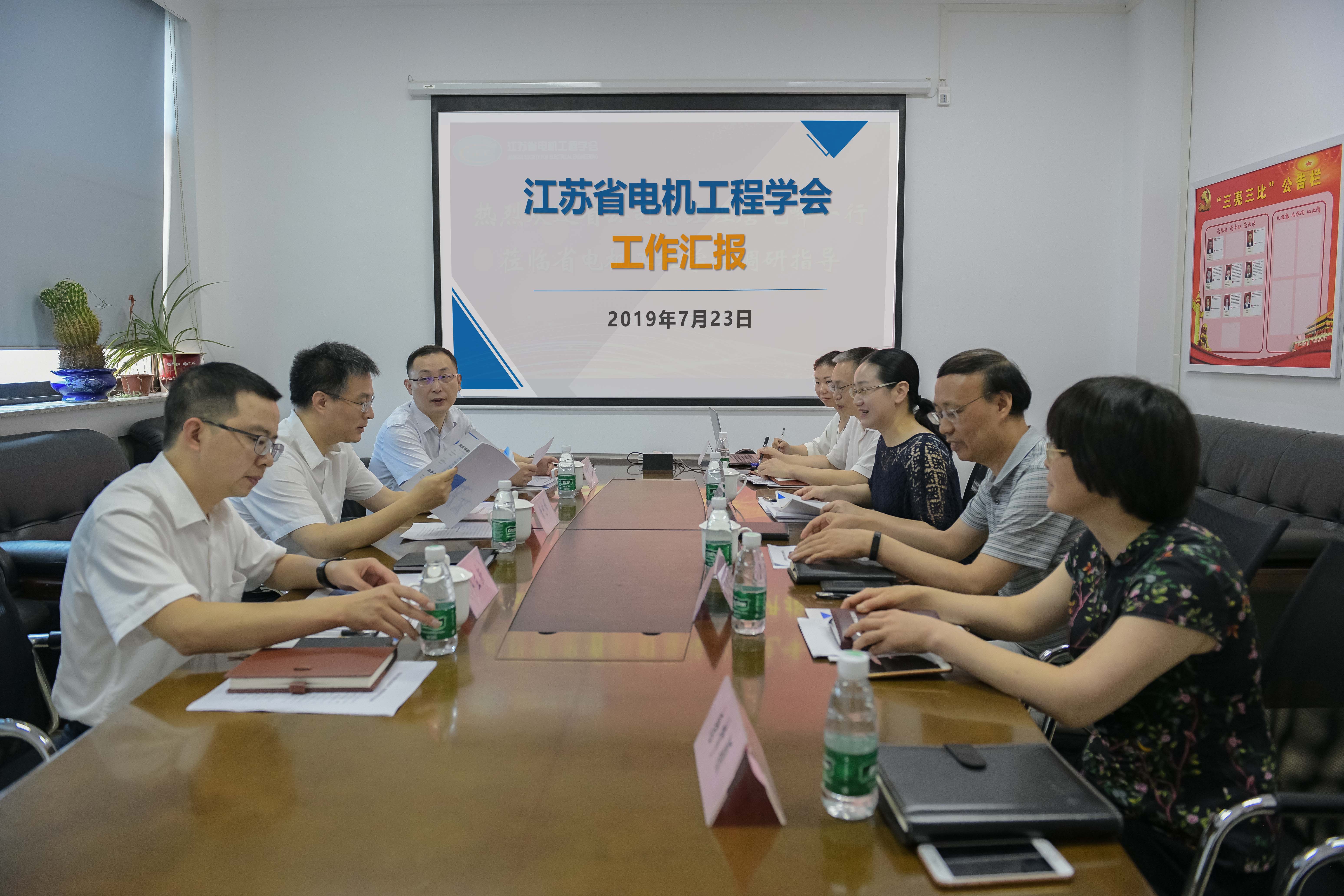 7月23日下午,国网江苏省电力有限公司总经理唐屹峰一行莅临江苏省电机工程学会秘书处开展工作调研。国网江苏省电力有限公司办公室副主任尹晓东,省电机工程学会秘书长杨晓梅、副秘书长严国平陪同调研。