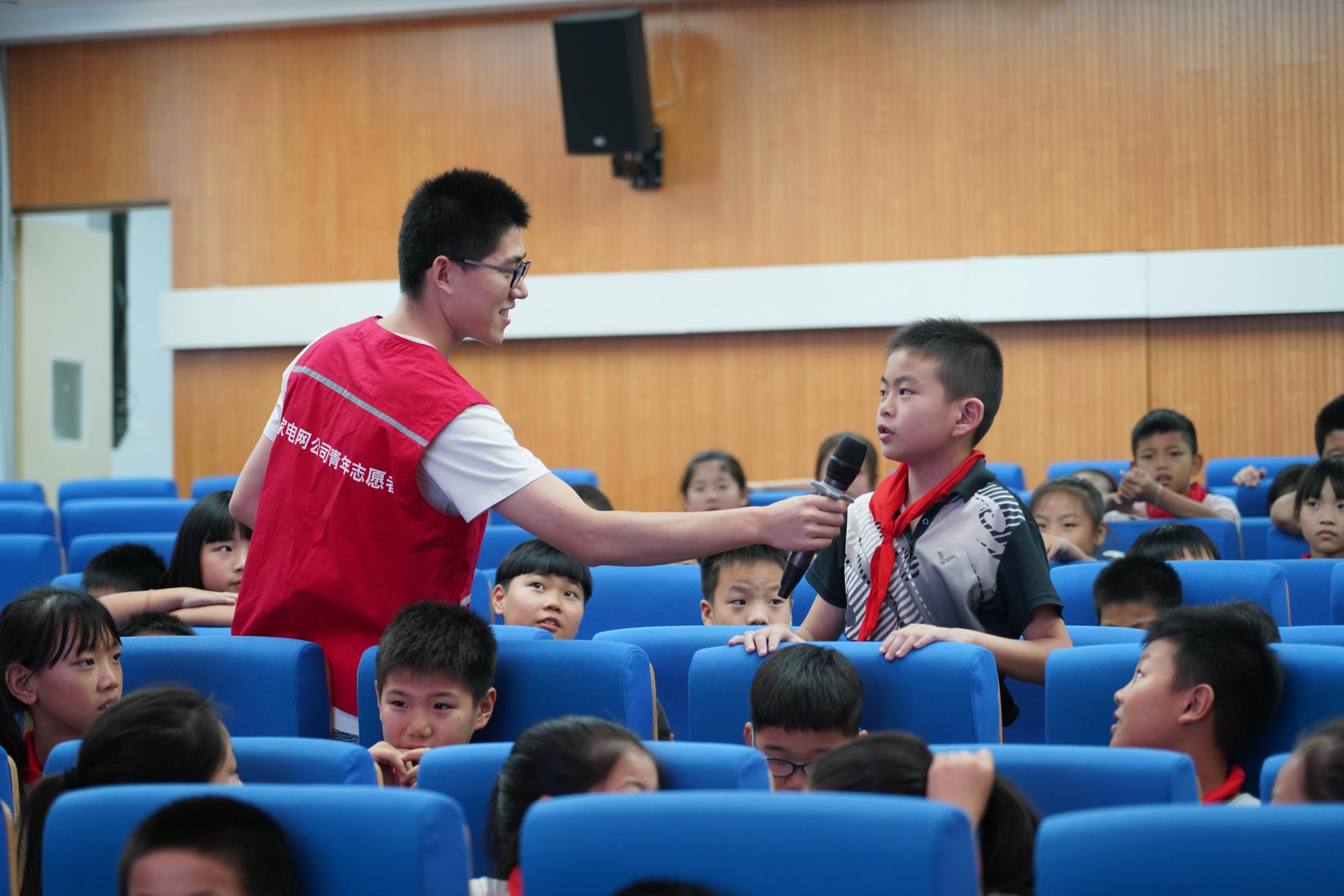 活动当天,电力体验馆志愿者在多功能教室面向200多名四年级学生开展了一场生动有趣的电力知识科普活动。活动中,志愿者通过多媒体授课结合安全用电小动画等形式,声情并茂的向同学们讲解什么是电、电是怎么来的、如何预防用电事故、安全用电等内容,同时展示了电力科技的发展与创新成果,给大家带来的美好新生活。利用讲解互动、有奖抢答的形式让同学们在愉快轻松的氛围中牢记了生活中的用电常识,了解了电的重要性,激发了他们学习科学知识的热情。