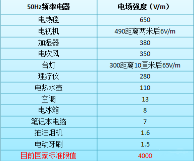 保持安全距离,辐射微不足道。尽管这些电器的品种和品牌各不同,但是全部都符合4000v/m的国标要求,在正常的使用距离,电场强度只有安全标准值的万分之一到千分之一。