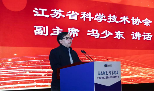 冯少东代表省科协向全省广大电机工程领域的科技工作者致以诚挚的问候。他指出,本次年会为我省电力科技工作者带来一场难得的学术盛宴。这是省电机工程学会顺应新时代发展需要、回应社会关切的又一次生动实践。衷心希望各位专家、企业家、各位来宾以此次论坛为媒,直面问题挑战、广泛开展交流、加强协同合作、共谋创新发展,为推动电机工程学科发展作出新贡献,为江苏高质量发展走在全国前列提供智慧和力量。