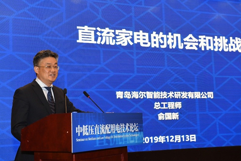 青岛海尔超前研究院总工程师俞国新介绍了海尔公司在直流家电领域的研究和思考。