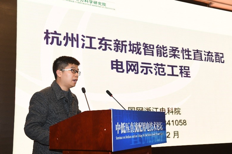 国网浙江公司裘鹏专家介绍了杭州大江东直流配用电系统示范工程的建设背景及建设方案。