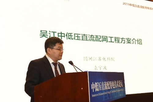 国网江苏电科院总工程师袁宇波展示了吴江中低压直流配网示范工程的建设情况并探讨了建设过程中遇到的问题和思考。
