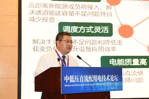 平高集团电力电子部首席专家高树同介绍了平高集团在中低压直流配用电技术领域的工程实践及相关成果。