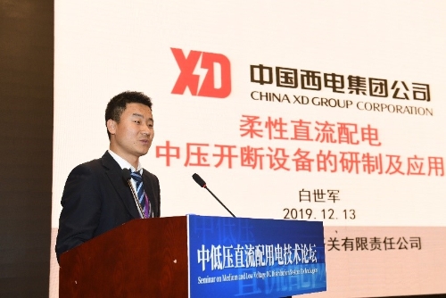 中电普瑞科技有限公司的查鲲鹏总经理介绍了中低压直流配网关键设备及张北柔性变电站示范工程。