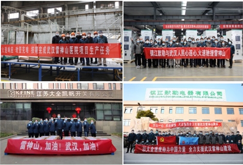 当前疫情防控形势严峻,雷神山医院建设使命光荣、责任重大。接到通知后,大全集团高度重视,集团公司召开电话会议,第一时间成立武汉“雷神山”配电建设项目组,由集团总裁徐翔担任项目组组长,火速部署相关生产及保障措施。将电气产品生产放在数字化制造水平较高的大全默勒,凯帆开关、凯悦铜材、金属表面处理公司进行相关配套生产,集团总裁办、营销总公司、生产部进行后勤保障,各公司、部门通力协作,高效高质量完成任务。