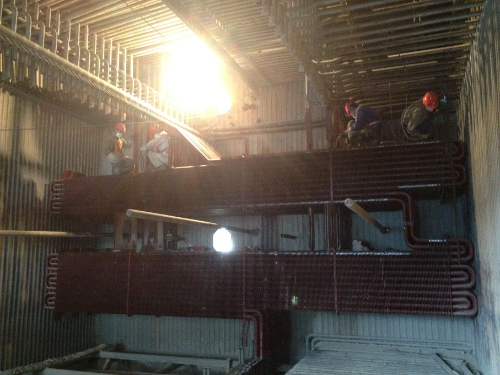 唐海宁同志针对这一问题经过长期跟踪、科学分析、充分调研、严谨认证,分析了大量的运行数据,并总结不同煤种对锅炉运行参数的影响。通过大量数据的对比分析,确定了锅炉过热器减温水量大、排烟温度高的原因是锅炉设计存在偏差,采用了低NOx燃烧器造成锅炉燃烧温度下降,导致炉膛吸热量不足,炉膛出口烟温高于设计值,最终导致过热器减温水量及排烟温度上升。原因分析清楚后,唐海宁同志对比分析了9种不同解决方案,从中择取了效果最好、成本最低的改造方案,提出通过将原有光管省煤器改造为换热效果更好的H型省煤器,增加省煤器吸热量,在降低锅炉减温水量的同时达到降低锅炉排烟温度的目的。改造方案在公司#1、#2机组检修中成功实施后,锅炉减温水量下降了100t/h,同时锅炉排烟温度也下降至设计值,彻底解决了这一重大技术难题。