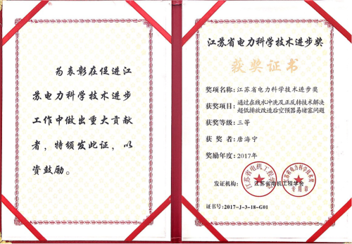 唐海宁是江苏国信扬州发电有限责任公司的优秀员工,作为江苏省内热能工程专业专家,是江苏省333高层次人才培养对象,荣获10多项科技奖项,获得授权专利6项,并撰写高质量论文二十余篇。该同志自工作以来一直从事电力专业技术管理及技术改造工作,完成了《通过燃烧器改造降低锅炉燃烧器氮氧化物排放量》项目,并获得了2014年江苏省行业协会QC小组一等奖。组织开展的《热一次风旁路系统技术的研究开发及应用》项目荣获2009年中国电力热工研究院科学技术奖三等奖,组织开展的《空预器在线水冲洗改造》项目荣获2017年江苏省电力科技进步三等奖。