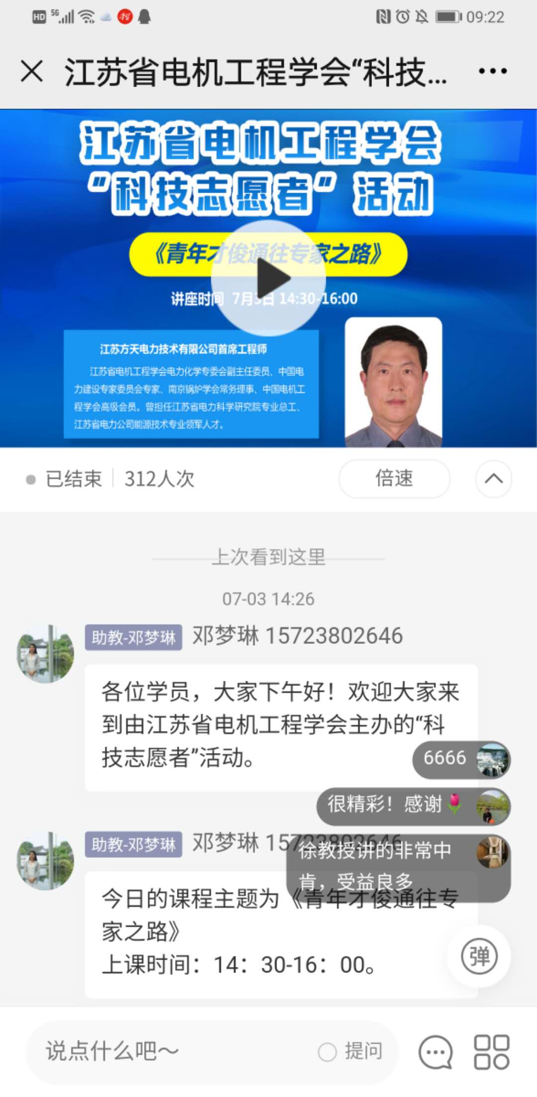 7月3日下午,江苏省电机工程学会举办科技志愿者活动,邀请专家作《青年才俊通往专家之路》报告,分享专家成长经验。本次讲座采用网络直播方式进行,邀请省电机工程学会电力化学专委会副主任委员、江苏方天电力技术有限公司首席专家徐洪主讲。省电机工程学会各会员单位、专工委会、学生分会300余名青年会员在线观看了本次讲座。