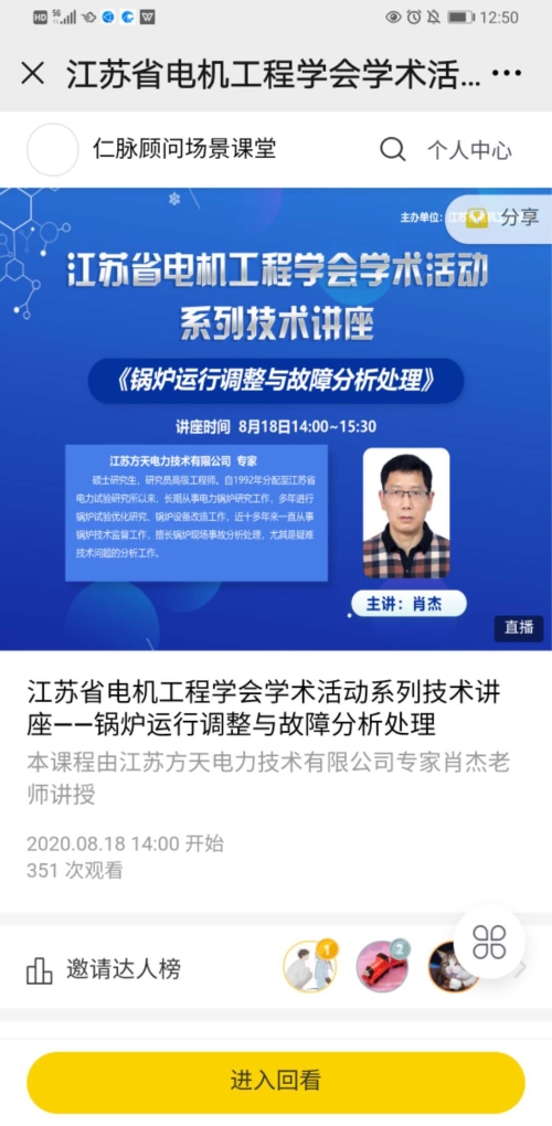 8月18日下午,江苏省电机工程学会成功举办系列技术讲座第三期——《锅炉运行调整与故障分析》。讲座采用网络直播的方式进行,特邀江苏方天电力技术有限公司肖杰高工主讲。省电机工程学会各会员单位、专工委会、各发电企业一线技术人员350余人在线观看了本次讲座。