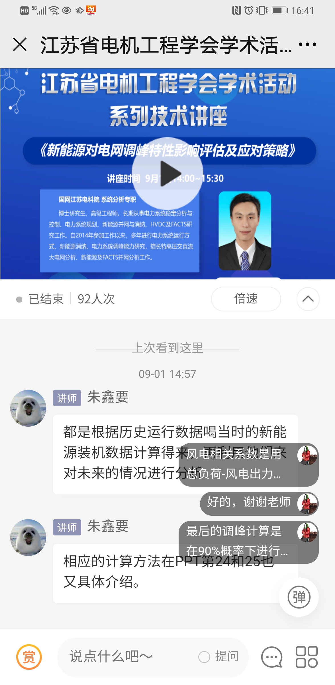 本次讲座介绍了江苏电网新能源现状及规划发展情况,重点分析了风电、光伏新能源出力特性以及其对电网调峰特性影响的量化评估方法,并对明年新能源消纳电网调峰问题进行了分析和展望,为含大规模新能源电网的调峰工作提供了经验和借鉴,受到与会人员的一致好评。