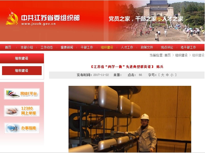 为发挥先进典型示范引领作用,推动“两学一做”学习教育常态长效开展,根据江苏省委《关于推进“两学一做”学习教育常态化制度化的实施方案》(苏办发〔2017〕24号)安排,省委组织部推出“两学一做‘先进典型’ 群英谱”。省电机工程学会电磁兼容专委会委员陈兵博士作为电力系统内唯一入选“群英谱”的先进典型,他的事迹在省内主要媒体广为宣传。