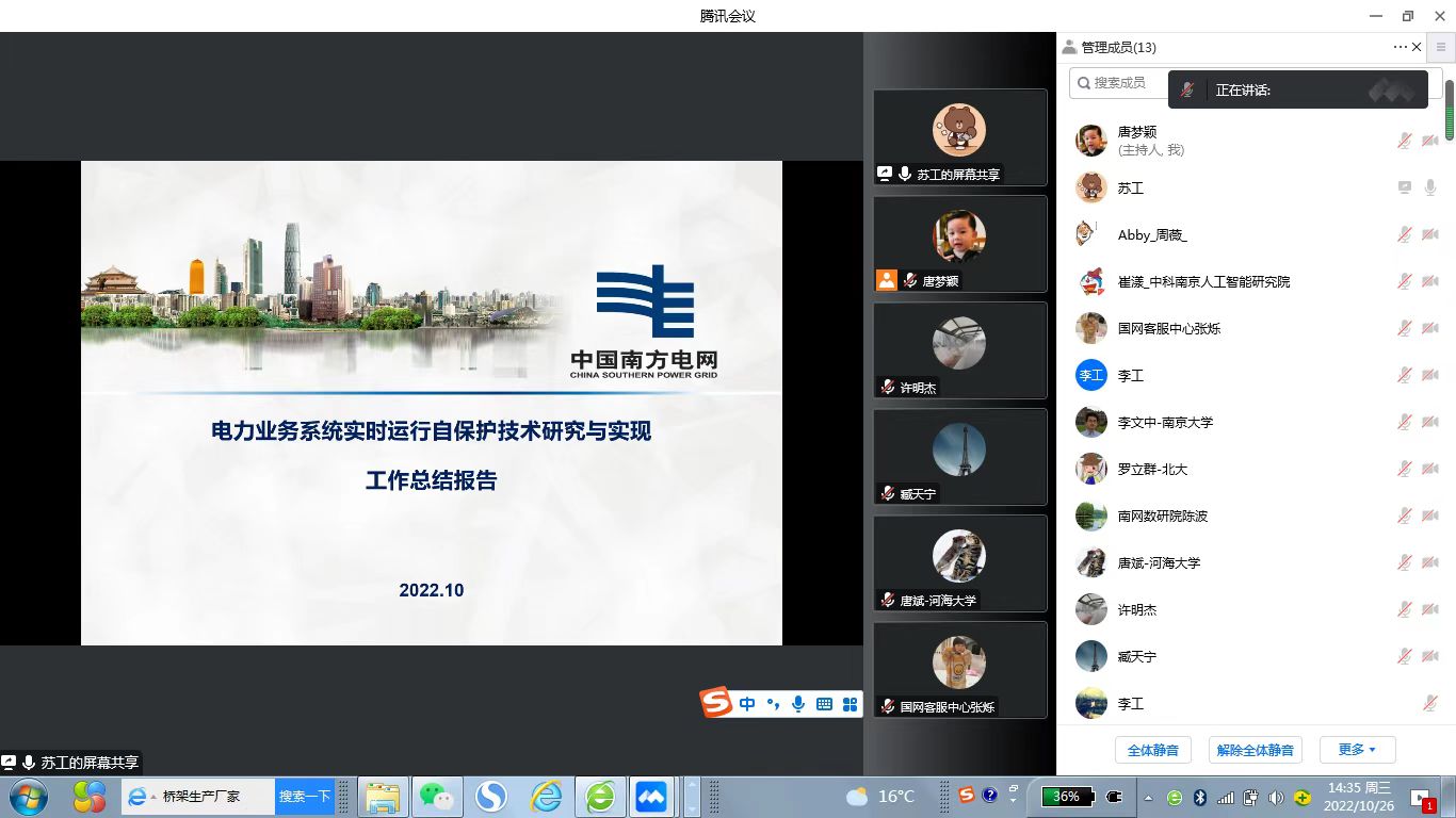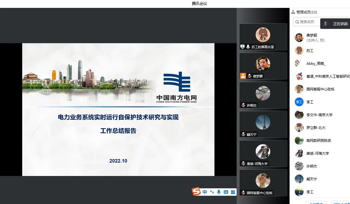 10月26日,江苏省电机工程学会受南瑞集团有限公司委托,采用线上方式组织召开“电力业务系统实时运行自保护技术研究与实现”项目科技成果鉴定会。此次鉴定委员会由来自中国科学院、北京大学、南京大学、河海大学、国网客服中心、南方电网数研院和南京中科人工智能研究院等单位专家组成。
