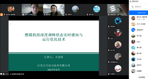 4月4日,江苏省电机工程学会受江苏方天电力技术有限公司委托,采用线上方式组织召开“燃煤机组深度调峰状态实时感知与运行优化技术”项目科技成果鉴定会。本次鉴定委员会由来自南京工程学院、国网江苏省电力有限公司电力科学研究院、南京师范大学、国能神皖马鞍山发电有限责任公司、国家能源集团江苏电力有限公司、中国能源建设集团江苏省电力设计院有限公司和国家电投集团江苏电力有限公司等单位专家组成。