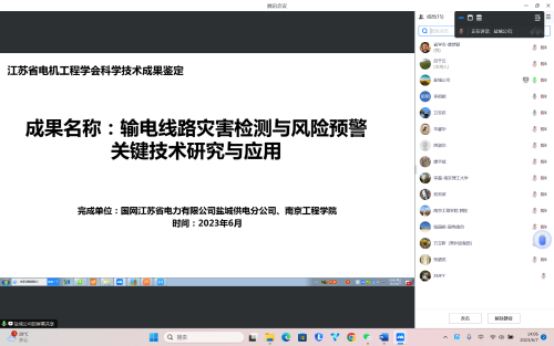 6月7日,江苏省电机工程学会受国网盐城供电公司委托,采用线上方式主持召开“输电线路灾害监测与风险预警关键技术研究与应用”项目科技成果鉴定会。本次鉴定委员会由来自河海大学、国电南京自动化股份有限公司、国网江苏电科院、南京理工大学、国网江苏超高压分公司、东南大学和国网常州供电公司等单位专家组成。