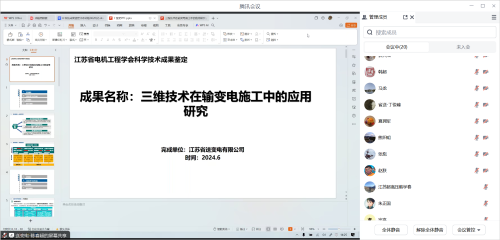 6月21日,江苏省电机工程学会受江苏省送变电有限公司委托,以视频会议形式主持召开“三维技术在输变电施工中的应用研究”项目科技成果鉴定会。本次鉴定委员会由来自国网特高压建设分公司、南京工业大学、中能建江苏省电力设计院有限公司、南京邮电大学、中国电力科学研究院有限公司、国网江苏省电力有限公司超高压分公司和国网江苏省电力有限公司建设分公司等单位的专家组成。