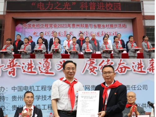 5月24日至25日,在“全国科技活动周”期间,中国电机工程学会2023年“电力之光”贵州科普下乡暨乡村振兴活动在遵义市娄山关红军小学举行。江苏省电机工程学会积极响应中国电机工程学会开展的活动号召,捐赠价值两万元的爱心物资,并派员全程参加活动。